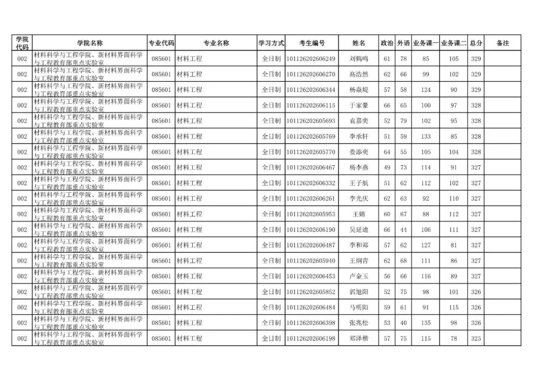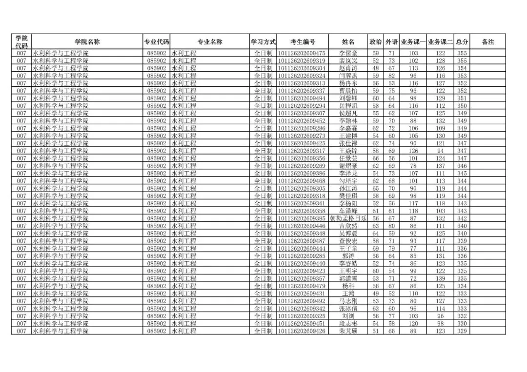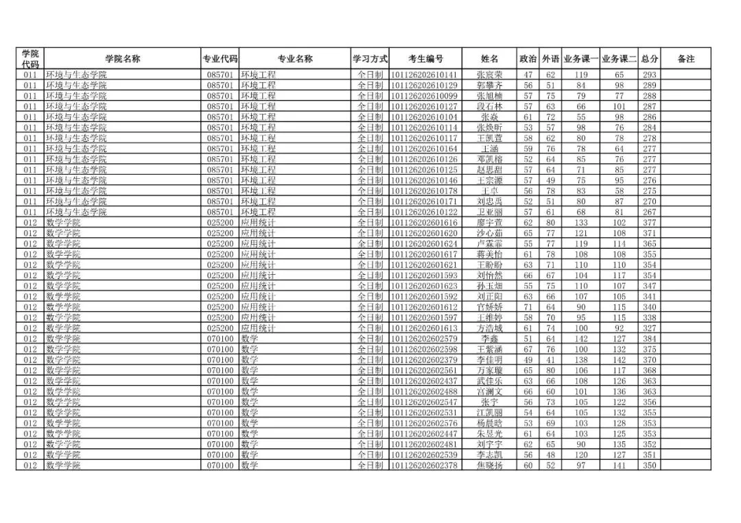 学院代码 | 学院名称 | 专业代码 | 专业名称 | 学习方式 | 考生编号 | 姓名 |