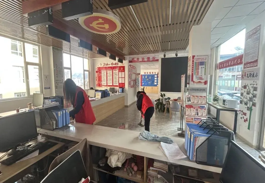 清洁家园齐动手,雷锋精神践于行。 学雷锋纪念日当天,青山路二社区的志愿者们拿起扫帚、抹布,对社区服务大厅和公共区域进行全面清扫。大家分工协作,擦拭玻璃、清扫地面、整理文件、清理死角,社区环境焕然一新,服务大厅明亮整洁,公共区域清爽宜人。志愿者们用汗水擦亮了社区的“文明窗”,也在点滴劳动中践行了雷锋“螺丝钉”精神。