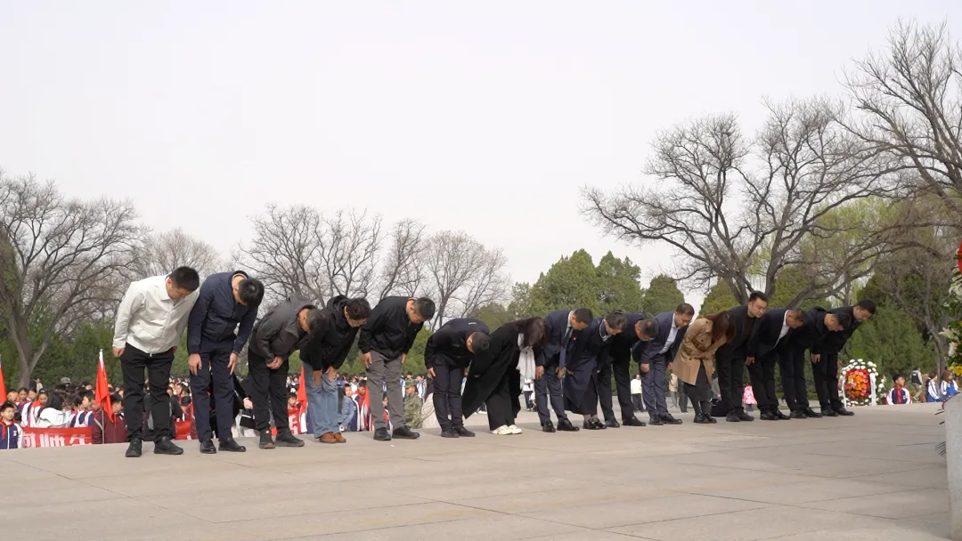 松柏苍翠映丰碑,庄严肃穆寄哀思。全体人员怀着无比崇敬的心情,向烈士纪念碑敬献花篮,缓步上前整理缎带,集体肃立默哀,鞠躬致敬,深切缅怀为解放太原浴血奋战、英勇献身的革命先烈,表达对英烈的崇高敬意与追思之情。