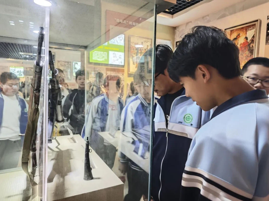 在双拥馆,同学们认真聆听革命事迹,驻足瞻仰历史展陈,深刻感悟今天的幸福生活来之不易,进一步坚定理想信念、厚植爱国情怀。