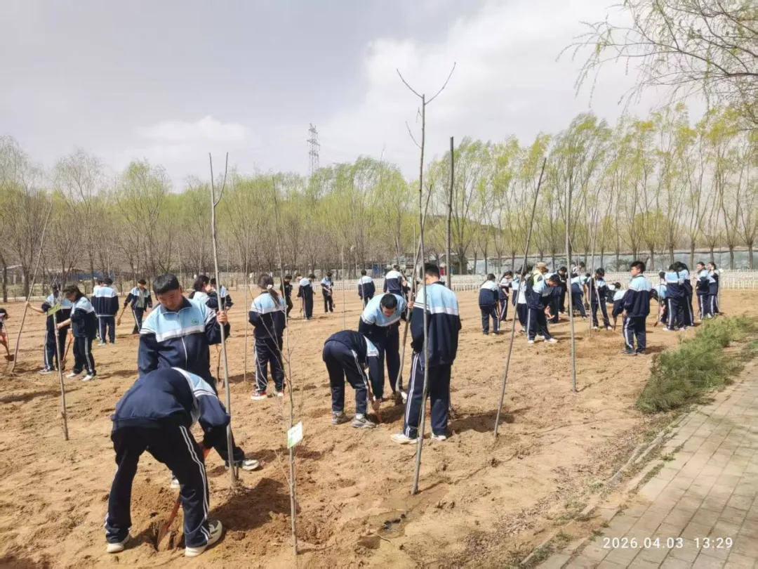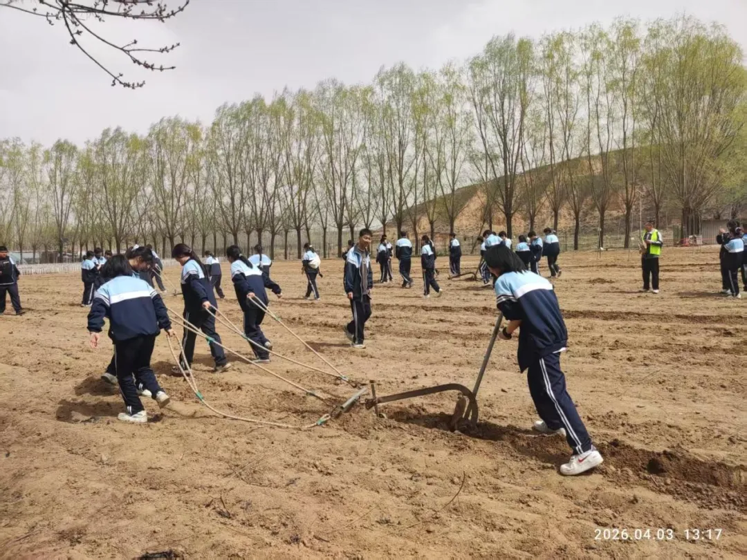 在自然田野间,同学们亲手种植小树、许下青春心愿,以绿意寄托希望;