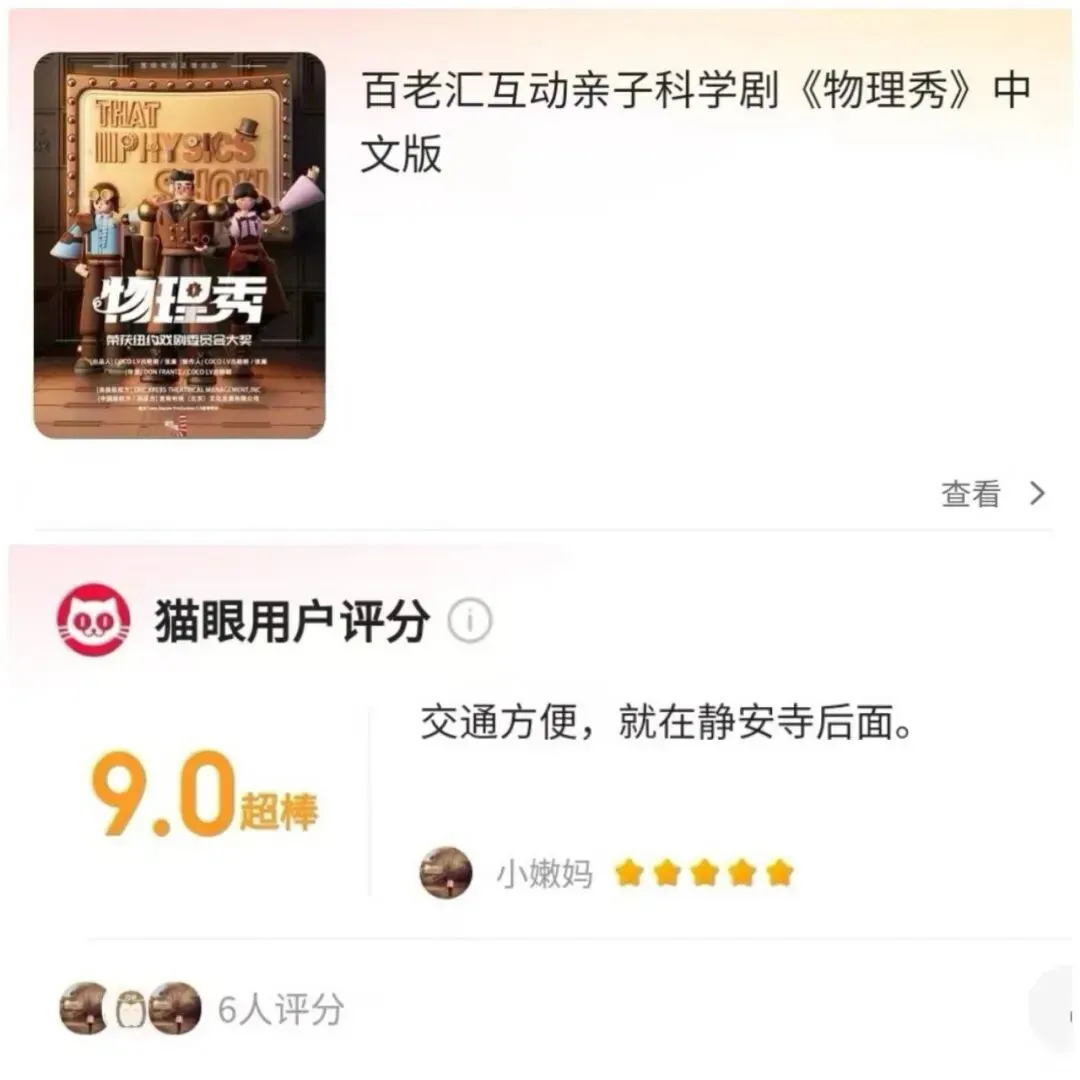 灭火器、自行车轮、可口可乐…日常所见的物品在物理法则之下,都能展现出非凡的魔力效果!舞台的主角不再是小丑和公主,而是主宰大千世界的牛顿法则、守恒定律、光电效应……这就是让无数人爱上科学的百老汇互动亲子科学剧《物理秀》!