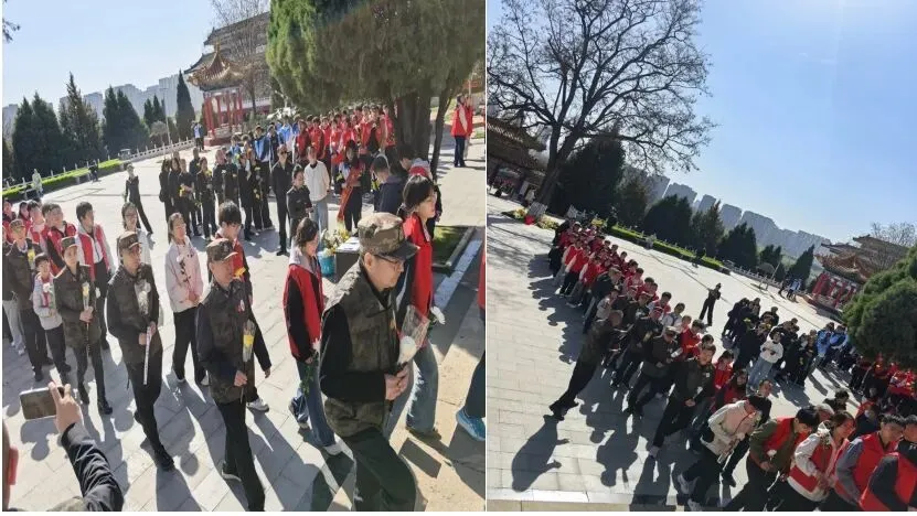 4月4日,春寒未消,松柏含悲,太原市关爱退役军人协会会长侯彦、顾问邢劲力空军大校带领会员单位代表、山西省学习雷锋总队志愿者共300余人,赴黄坡革命烈士陵园开展清明祭扫活动,深切缅怀革命先烈的丰功伟绩,传承红色基因,弘扬英烈精神,凝聚尊崇英烈、关爱退役军人的强大合力。