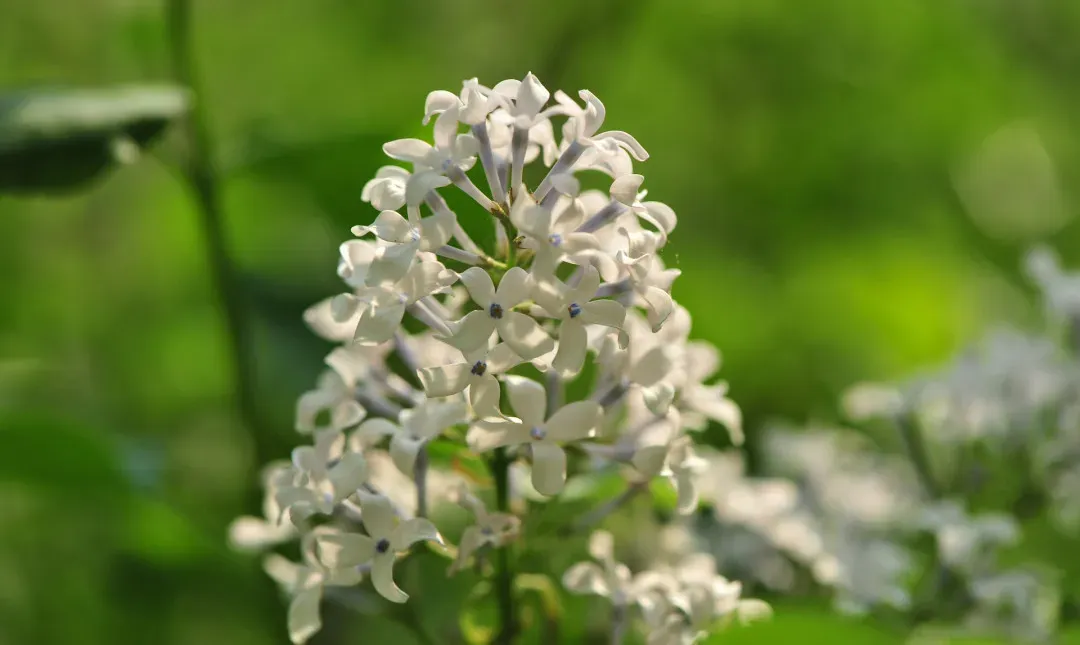 丁香:“一团香雪云,半城温柔乡”。丁香花色为紫、淡紫或蓝紫,也有白色、紫红及蓝紫色,成团成簇开放,随风摇曳,优雅迷人,芳香四溢。