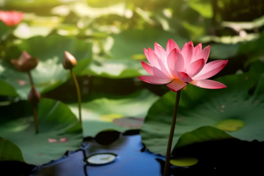 荷花:“接天莲叶无穷碧,映日荷花别样红”。荷花是中国十大名花之一,花大色艳、清香远溢,既可广植湖泊,蔚为壮观,又能盆栽瓶插,别有情趣。