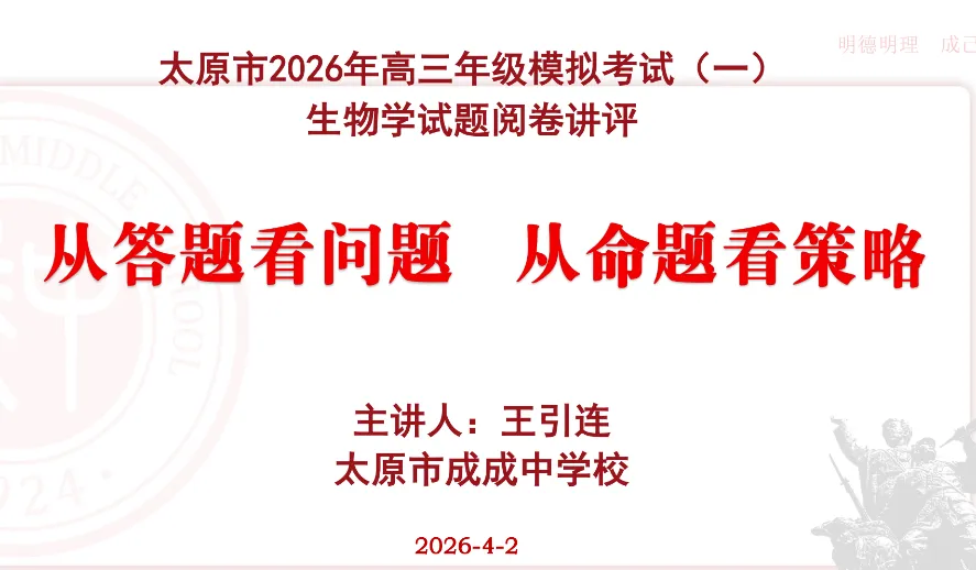 科学分层施教,提高复习效率。依据一模成绩精准定位学生层次,做到因材施教、靶向提分。以真题为标尺,强化题型模板。系统研究 2025 年山西高考及同类试题,总结原因分析、机制推理、实验设计、结论表述等高频题型的答题模板,让学生有思路、有方法、有规范。