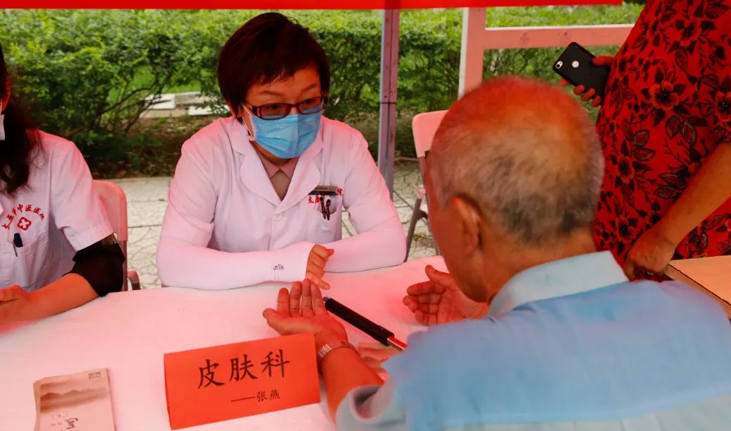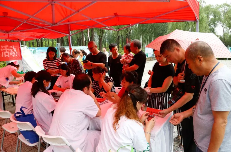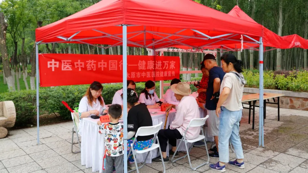 7月16日上午,太原市中医医院组织农工、民进、九三学社等民主党派医疗专家组成的义诊团队赴太原市南寨公园,开展“中医中药中国行——健康进万家”义诊活动。