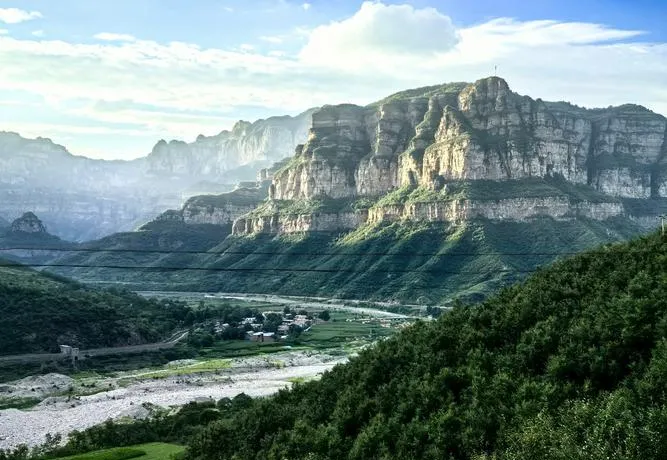 太行山大峡谷真正好的地方,不在开发好的那几个景区,在那些连名字都没有的小峡谷里。比如壶关和陵川之间有条沟,当地人叫"后沟",地图上都找不到,但你开车进去,两边的崖壁能有三四百米高,抬头看天就是一条线,沟底有溪水,水不深,最多没过脚踝,但清得能看见石头上的纹路,夏天去,光着脚在水里走,凉得透心,走到尽头是个瀑布,落差不大,但水量足,站在瀑布下面,水汽扑面而来,那种感觉,比任何景区的人工瀑布都带劲。