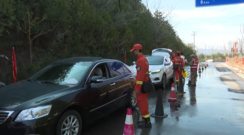 在卡口处,应急工作人员提前值守,对进山祭扫车辆逐车检查。