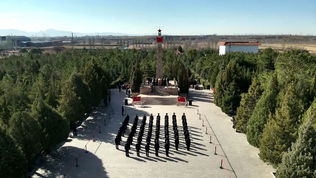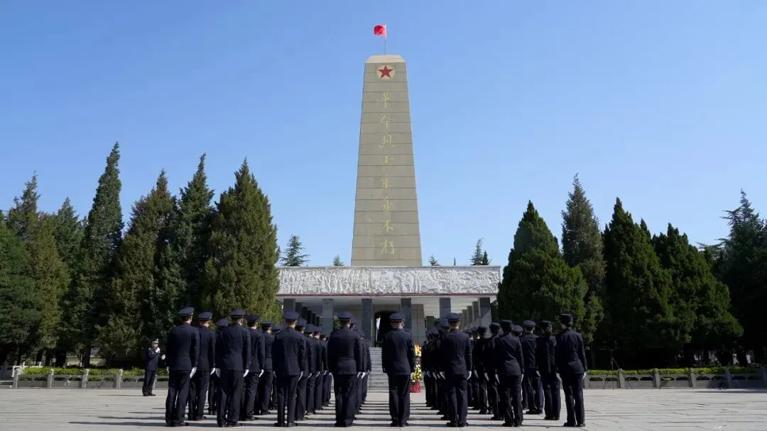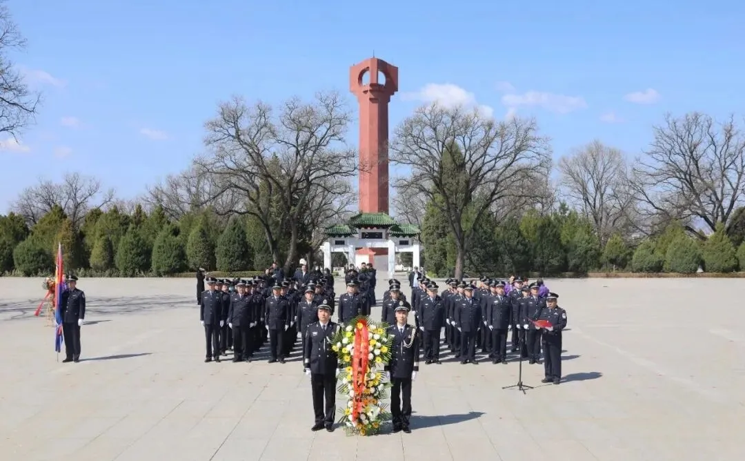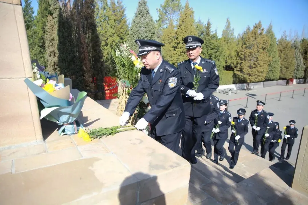 大同铁路公安处走进大同市革命烈士陵园,开展“致敬公安英烈 激发奋进力量”主题祭奠活动。全体民警肃立致敬,两名民警手抬花篮敬献纪念塔,全体民警脱帽默哀、面向党旗重温入党誓词,坚定传承英烈遗志的信念。