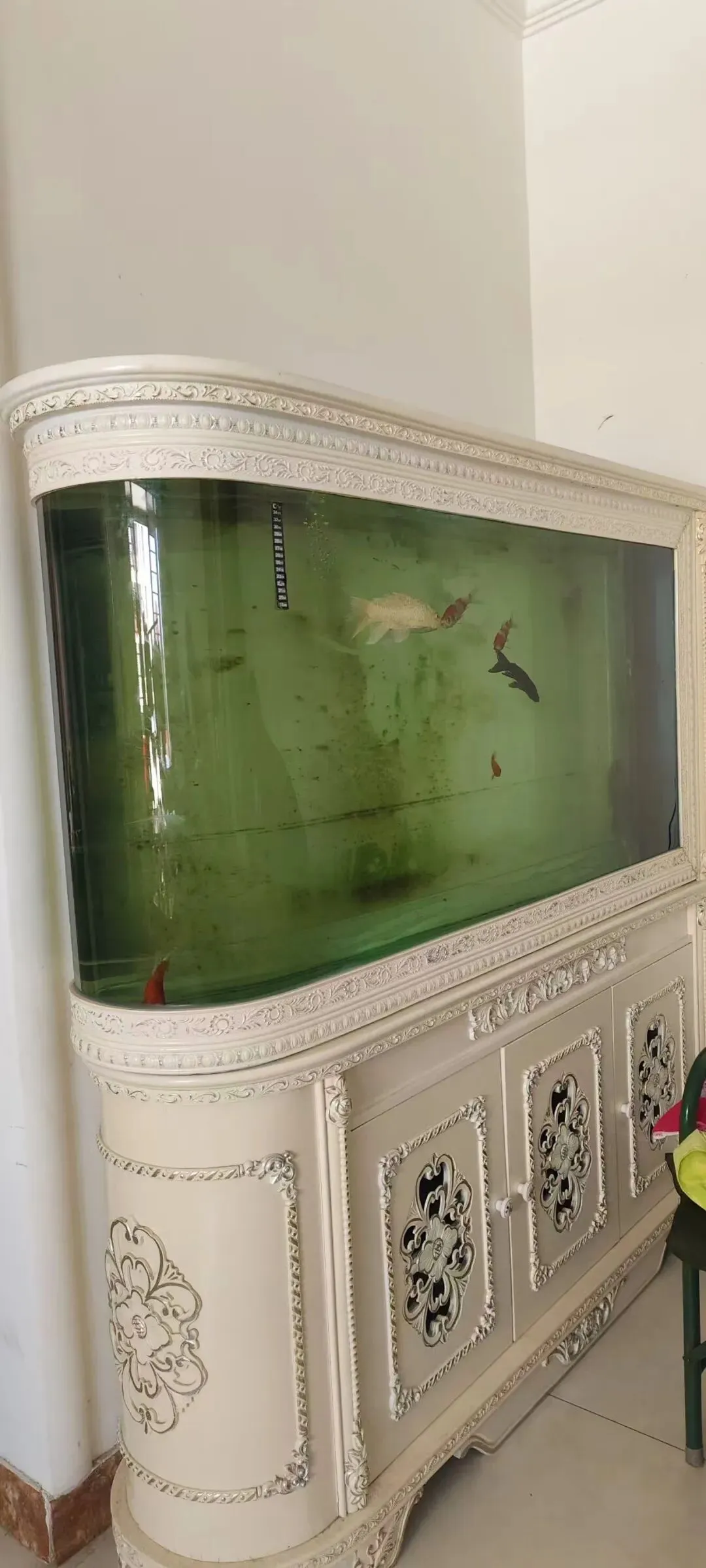出售白色鱼缸1.5*0.4*1.6,带水泵,净水设备,118mmLED鱼缸灯,共600元。