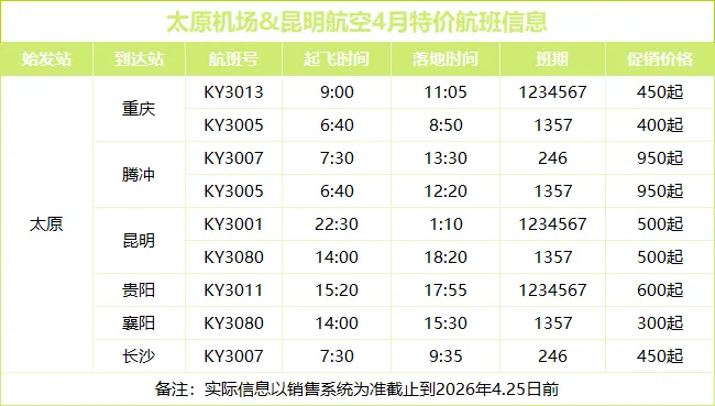 春日启程,不负好时光 | 太原机场&昆明航空4月特价机票来袭!