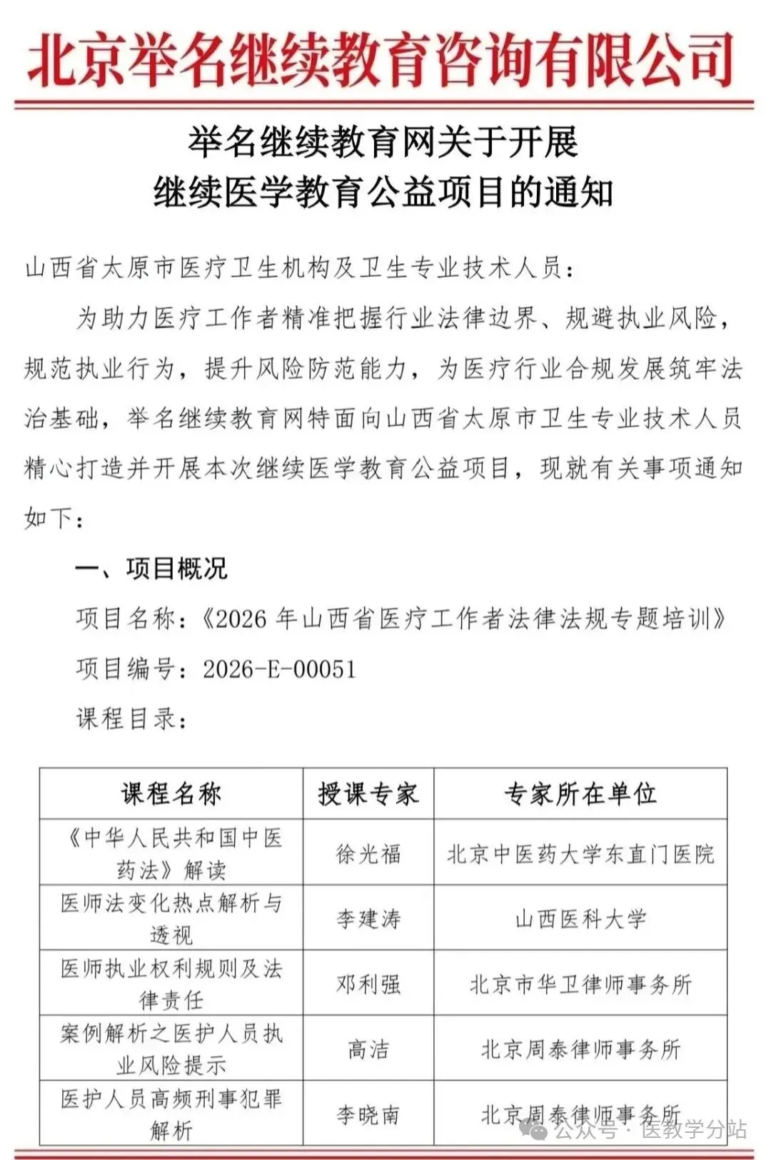 举名继续教育网关于开展继续医学教育公益项目的通知