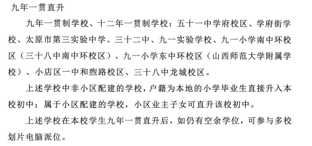 • 山大附中汾东学校:真武路—化章街—人民南路—正阳街原住居民子女