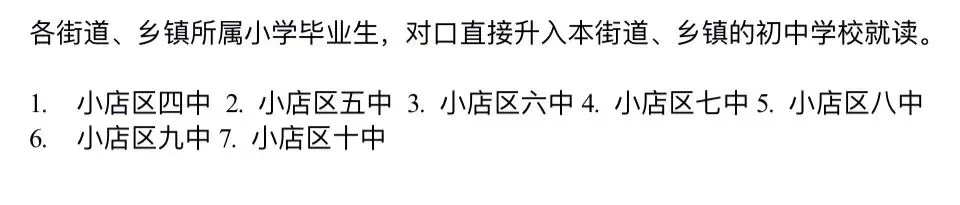 • 小店三中晨光校区:特定户籍范围+正阳街小学部分学生