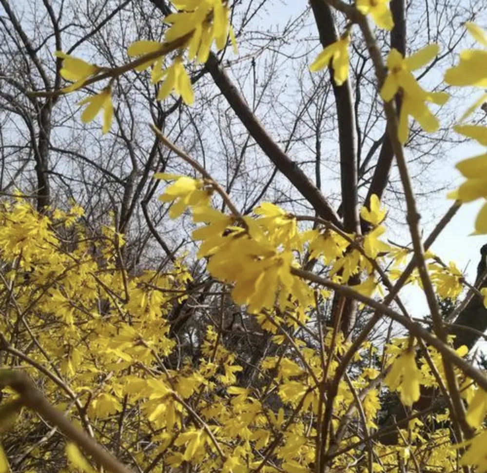 北方的春天正当时,柳树发芽,桃花盛开,金枝槐的黄金色和连翘花几乎点亮整个龙城……万物憋足了劲,满树的花蕾、叶蕾都像是闪光的星星,它们用最大的力气召唤着、吸引着人们走出家门,加入到春天的狂欢中。春天明亮的身躯,一时让人世间明朗起来。