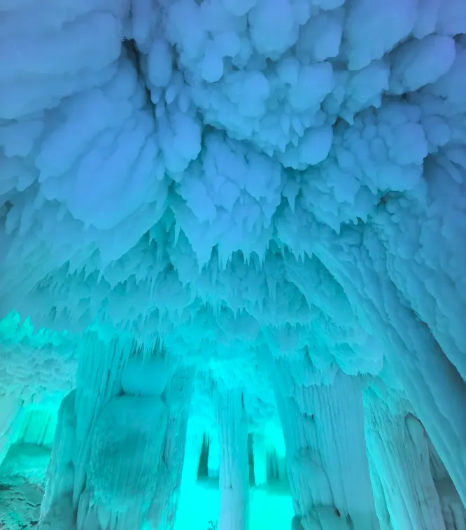 云丘山的冰洞,是封存了万年的冬天。即使外面夏日炎炎,走进这座形成于三百万年前的天然冰洞,依然会瞬间进入一个晶莹剔透的冰封世界。洞内四壁结冰,冰柱、冰笋、冰钟乳、冰石花千姿百态,在彩色灯光的映照下,宛如龙宫仙境。与常见的溶洞不同,这里的奇观由冰构成,是罕见的反季节冰洞奇景。穿行其中,寒意袭人,却让人惊叹于大自然鬼斧神工的另一面。