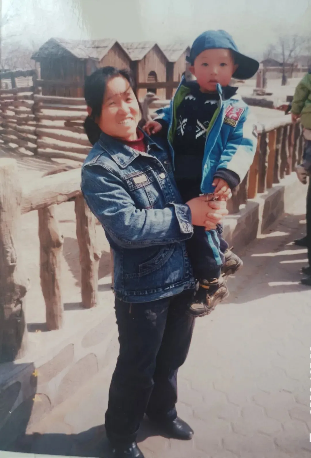 在动物园姥姥抱着留影
