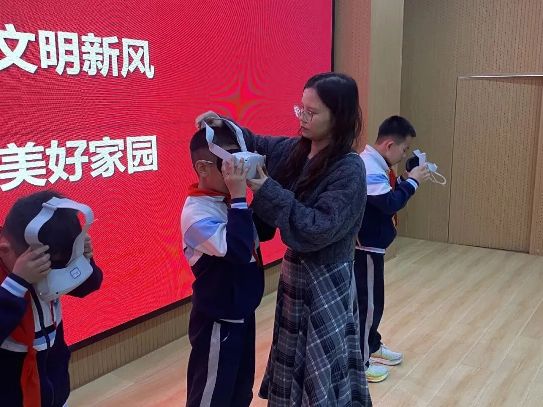 最令人期待的VR体验环节,瞬间点燃全场热情。同学们戴上VR眼镜,仿佛乘坐“时空穿梭机”,瞬间“走进”北齐墓室,与壁画中的人物、场景近距离对话。大家不时伸手“触摸”,在沉浸式体验中真切感受科技让文物“活”起来的神奇魔力,惊叹声与欢笑声充满整个校园。