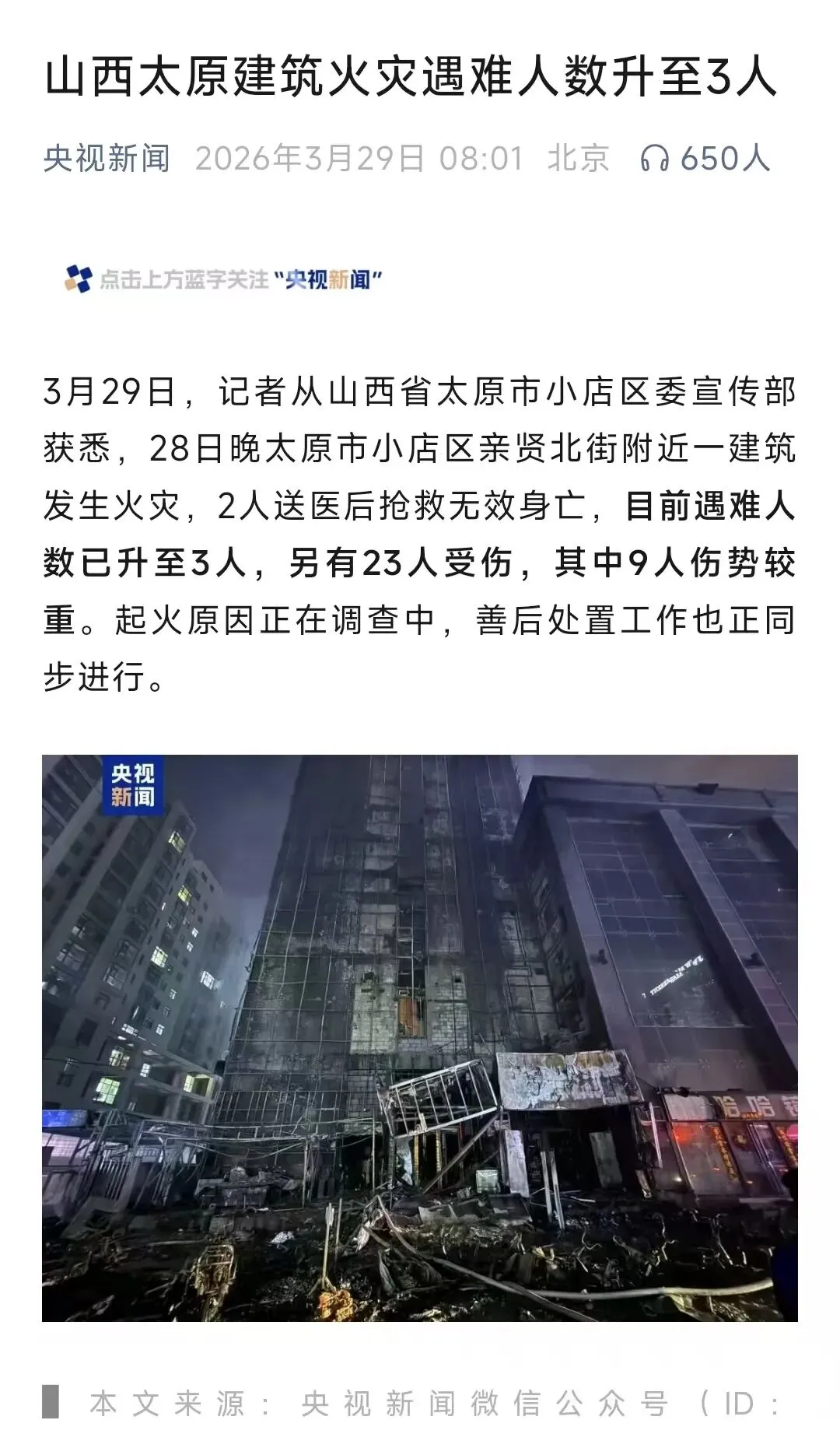 前几日,太原市小店区亲贤北街附近一建筑发生严重火灾事故,造成3人遇难、23人受伤,其中9人伤势较重。据了解,此次火灾由烧烤店不当操作引发,给人民群众生命财产安全带来了无法挽回的损失,也为我们敲响了消防安全的警钟。