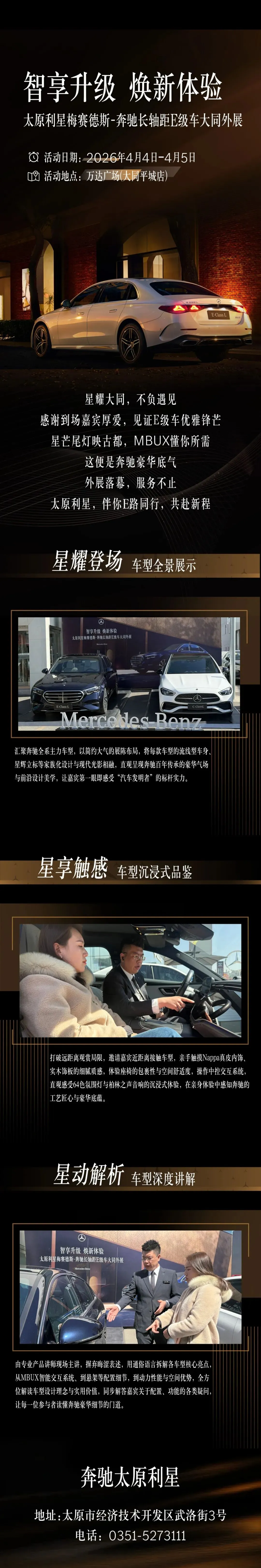 智享升级焕新体验 太原利星梅赛德斯-奔驰长轴距E级车大同外展完美收官