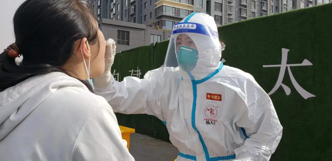 张立同志也是入党积极分子,参与经济区、清徐等地一线核酸采集工作,她说:“每当我看到采样现场‘党员先锋岗’、‘我是党员,有事请找我’的字样,就感到由衷的骄傲和自豪,他们身上不怕困难,勇往直前的精神感染着我、引领着我,看到他们,我更加坚定了我的信仰,明确了我努力的方向,我一定要争取早日加入党组织!”“一个党员就是一面旗帜”,张立同志,正是感受到了“党员”这面旗帜的力量,激发了她早日成为党员的渴望!