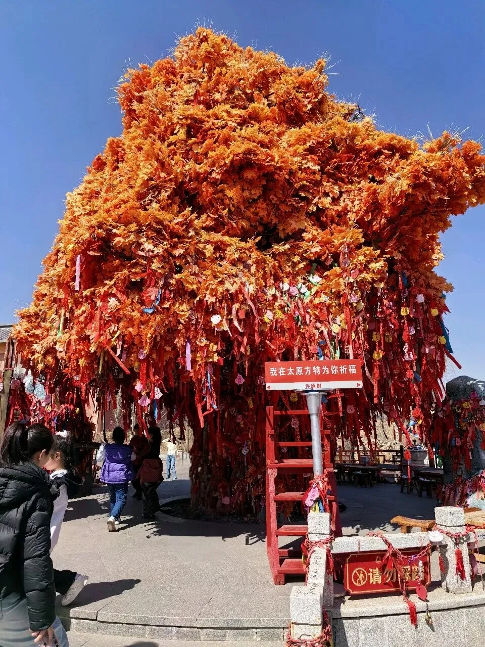 一过3号入口就能看到一棵四季长红的枫树,枝头上挂满了大大小小的心愿牌,氛围感拉满。