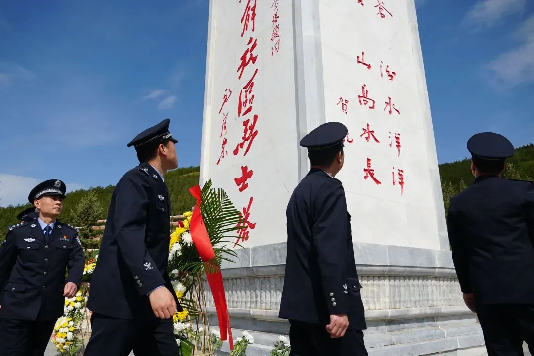 全体干部民警手持鲜花,依次瞻仰晋绥解放区烈士塔、驻足凝视英烈事迹,深情追思、缅怀致敬,接受深刻的精神洗礼。