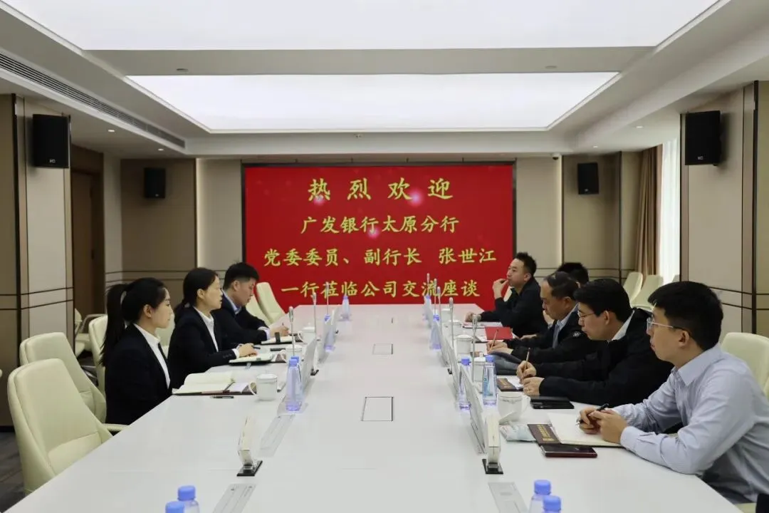 近日,广发银行太原分行党委委员、副行长张世江一行莅临山西建邦集团参观调研,双方就深化银企合作、推进废钢授信业务等事宜进行深入交流与洽谈。集团公司财务总监刘秀云陪同参观并座谈。