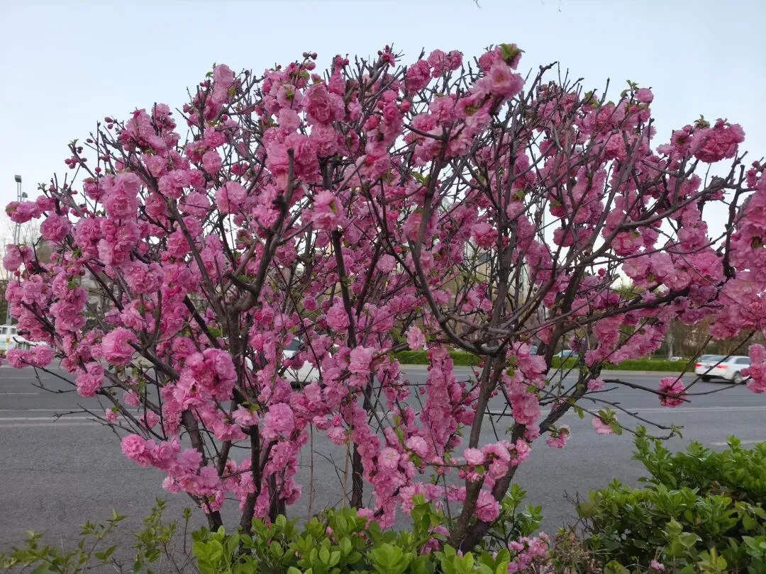 她叫重瓣榆叶梅,开得最盛,没有任何保留,也不需要摆弄什么姿态,憨憨地站在路边,一下子就用尽了全力,一口气就拿出了自己的所有。