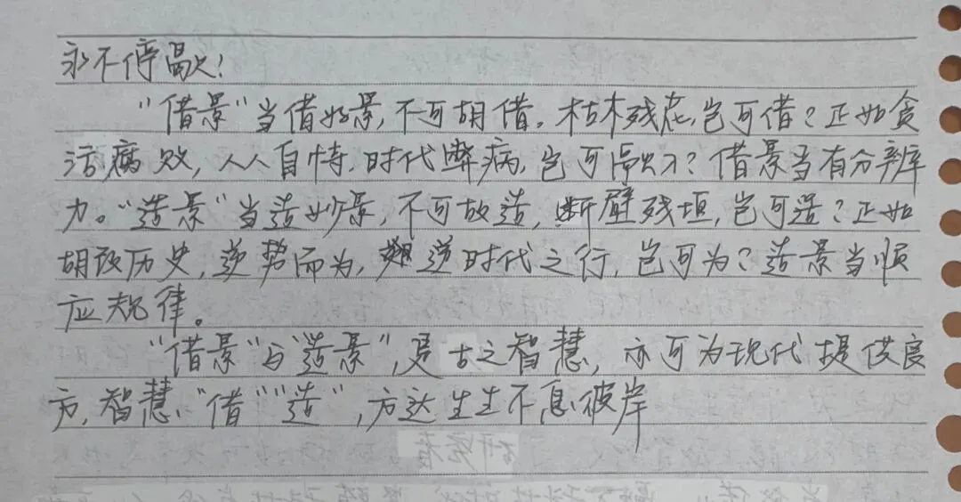 借景:继承传统、借鉴外来优秀文化(如古典诗词、西方技法、他国经验)。