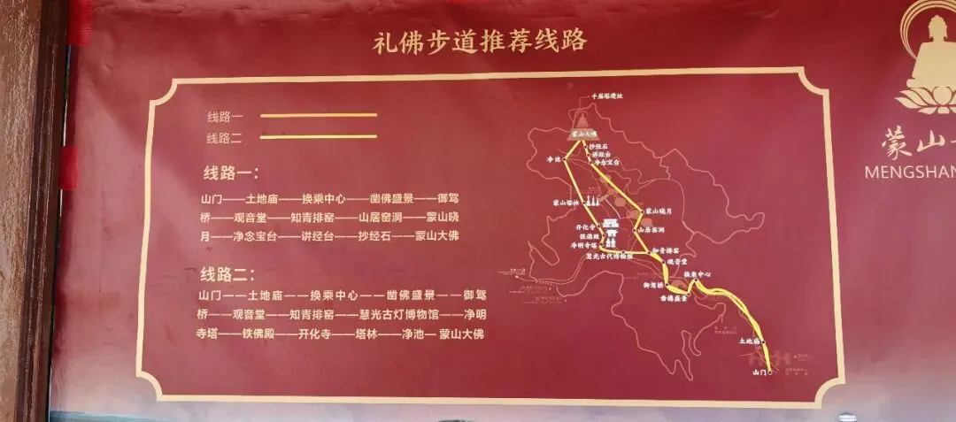 常规路线:景区主路,台阶平整,坡度缓,沿途经过御驾桥、观音堂、古窑洞、蒙山晓月、氧吧、净池,一路到大佛。单程 1.5–2 小时,老人、低龄娃都能走。