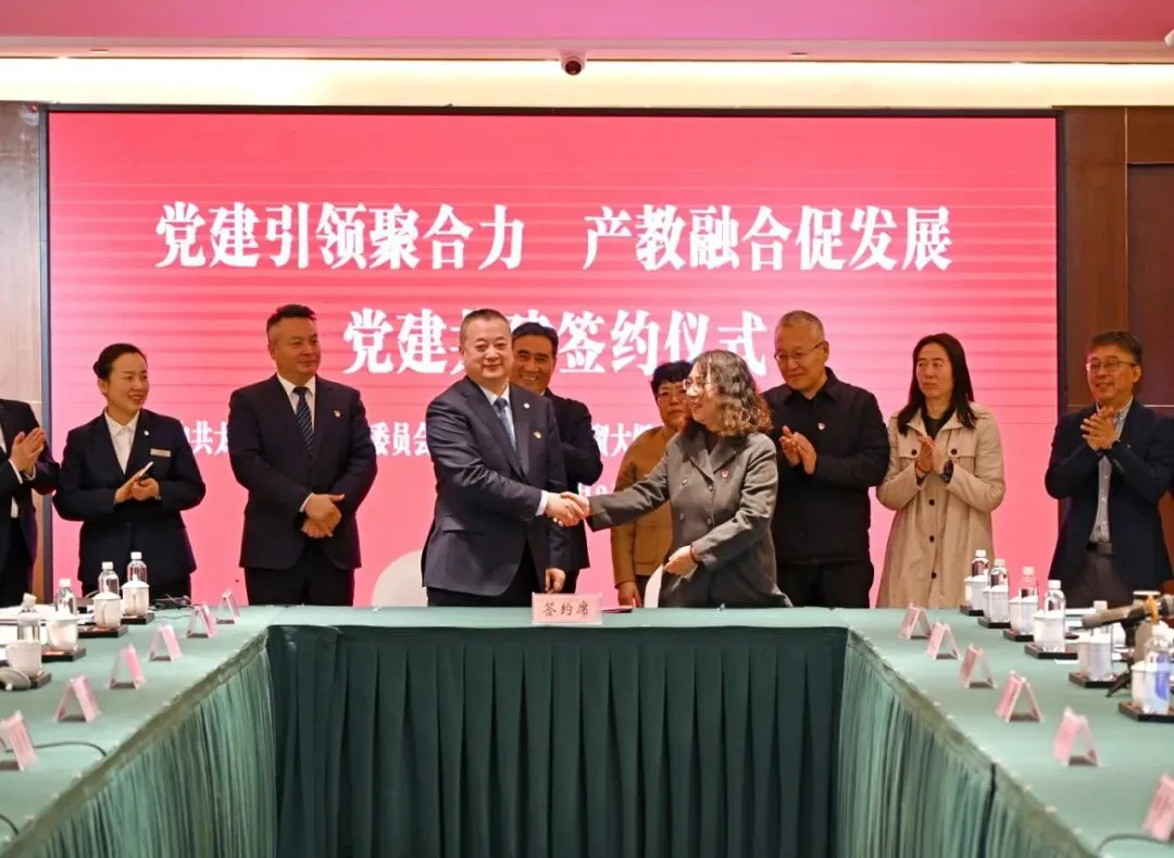 在全体参会人员的共同见证下,双方签订党建共建协议书。此次签约,标志着双方合作迈入了党建引领、优势互补、协同发展的全新阶段,为校企后续在人才培养、实习实训、就业创业、党建共建等多领域、深层次的合作筑牢制度根基,开启了校企合作的新篇章。