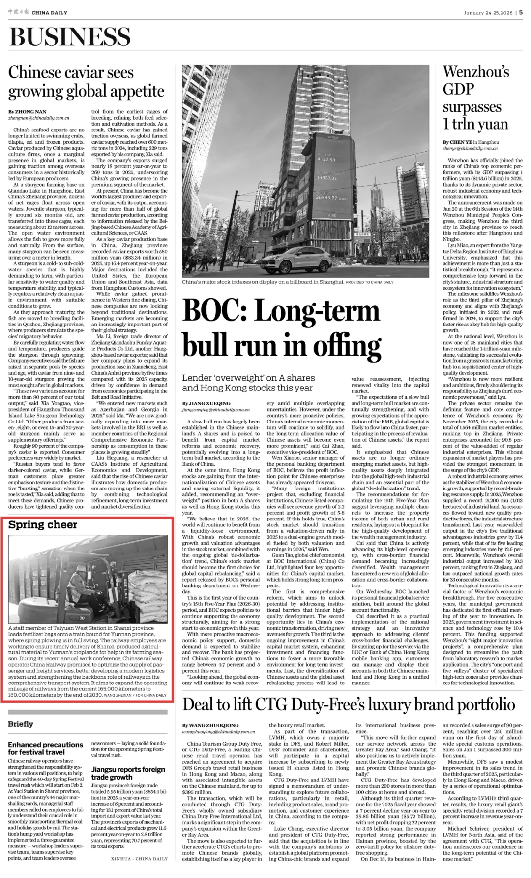 2026年1月24日,在中国日报(海外版)第五版上发表《Spring cheer》图片新闻一篇,内容为太原西站全力确保山西生产的农用物资能及时送达云南的农田,为当地的春耕生产提供帮助。作者:太原西站 王哲先。