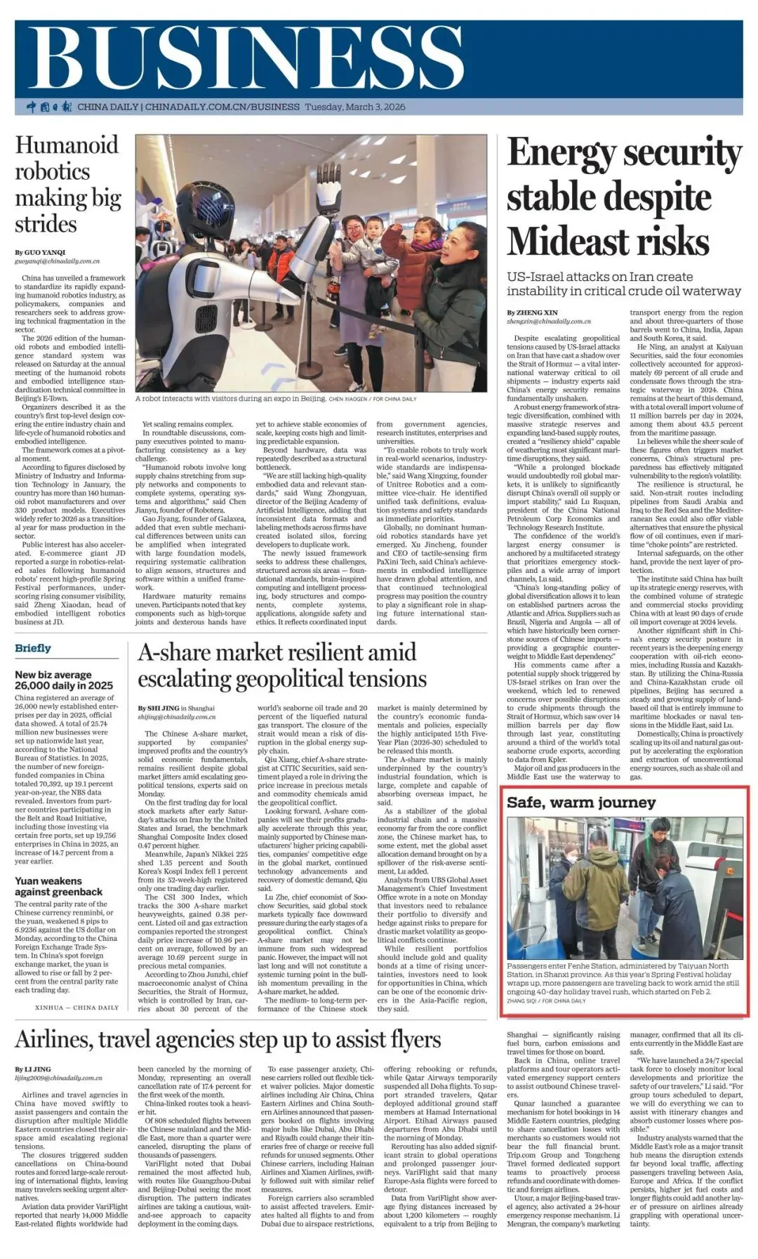 2026年3月3日,在中国日报(海外版)第五版上发表《Safe, warm journey》新闻一篇,内容为汾河站职工对进站旅客进行安检查危,确保旅客列车安全。作者:货检车间 张思琪。