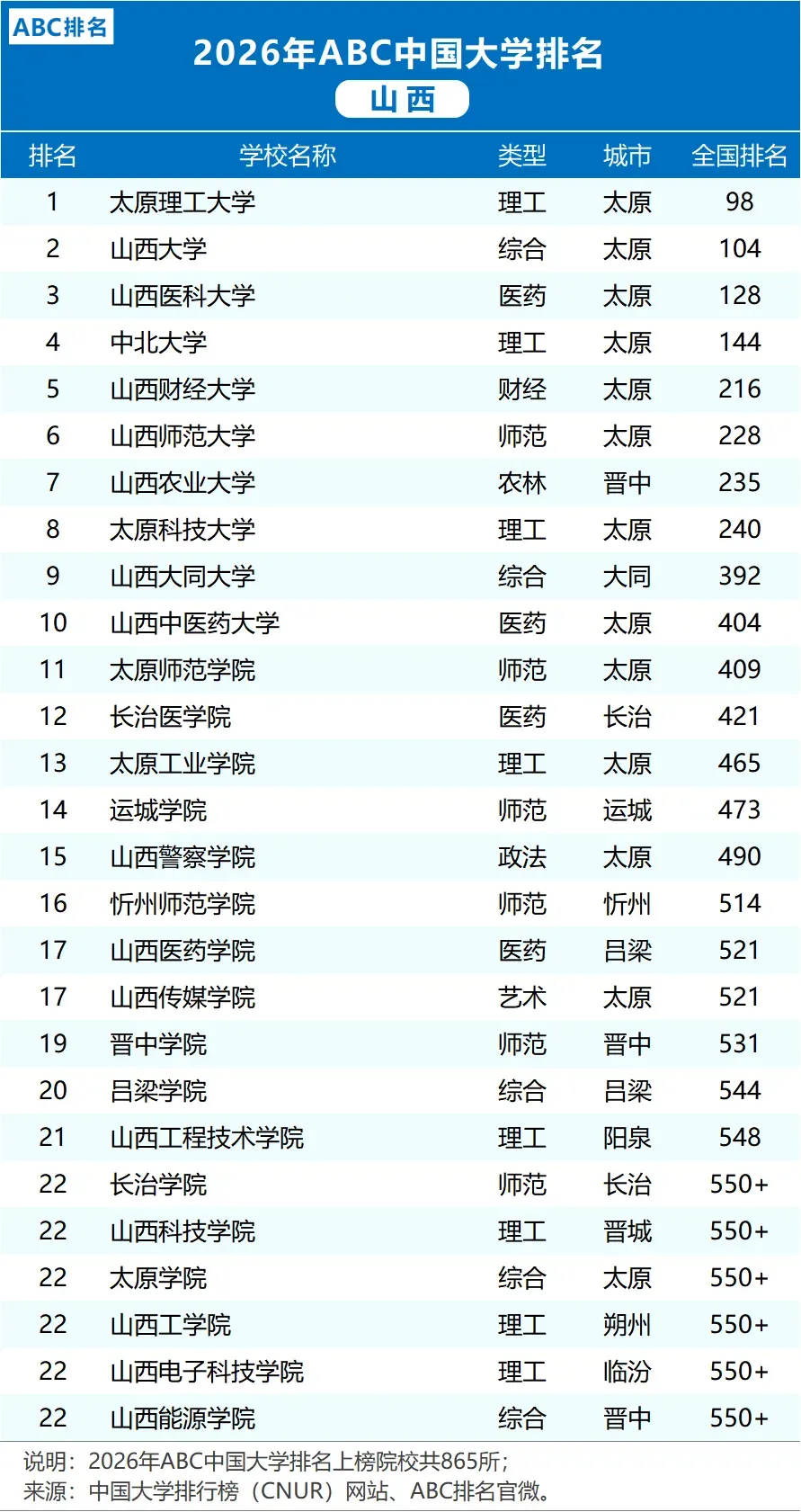本次山西高校排名的公布,使更多的人了解了这几家院校的办学情况以及排名,也体现了山西不同类型高校的发展状况。这些院校大多立足于本地,为地方发展输送人才,在各自的领域起着稳定的作用。大家可以就这几所院校的办学情况、它们的位次表现和发展方向发表自己的看法,并且可以留言。
