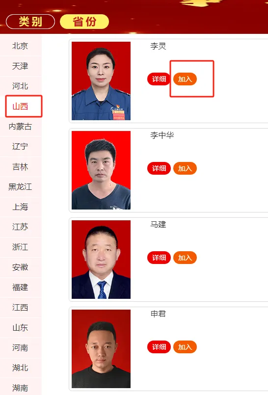 1.进入评议页面,点击“省份-山西”,将李灵“加入”列表,点击右下角“评议”。