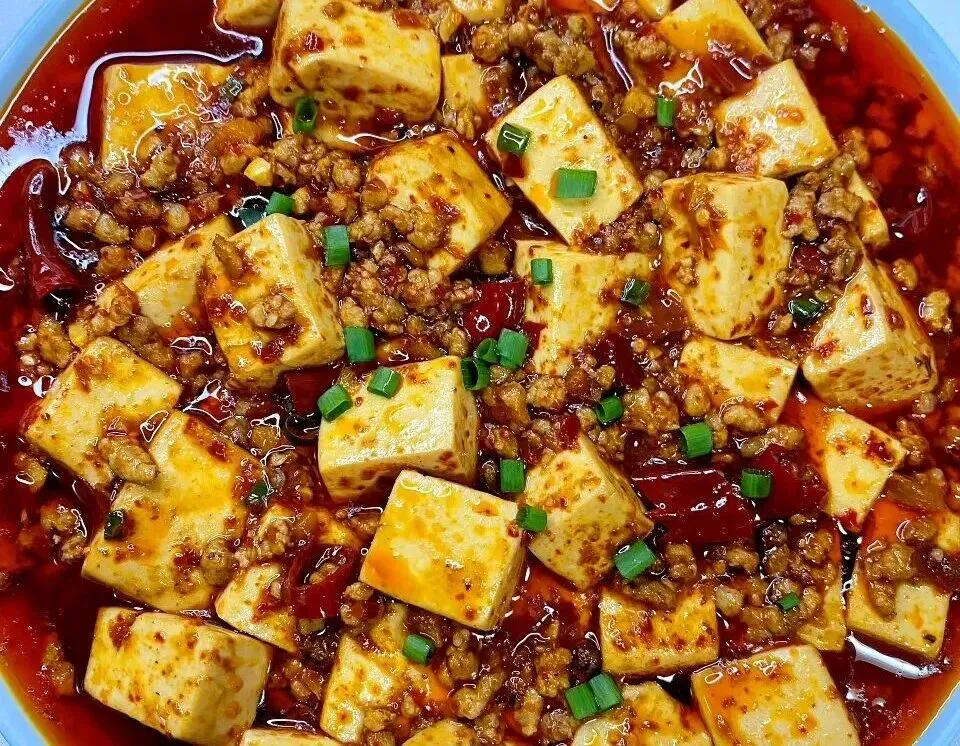 肉片炖豆腐、土豆丝炒肉、清炒油菜、米饭、馒头、八宝粥、绿豆稀饭