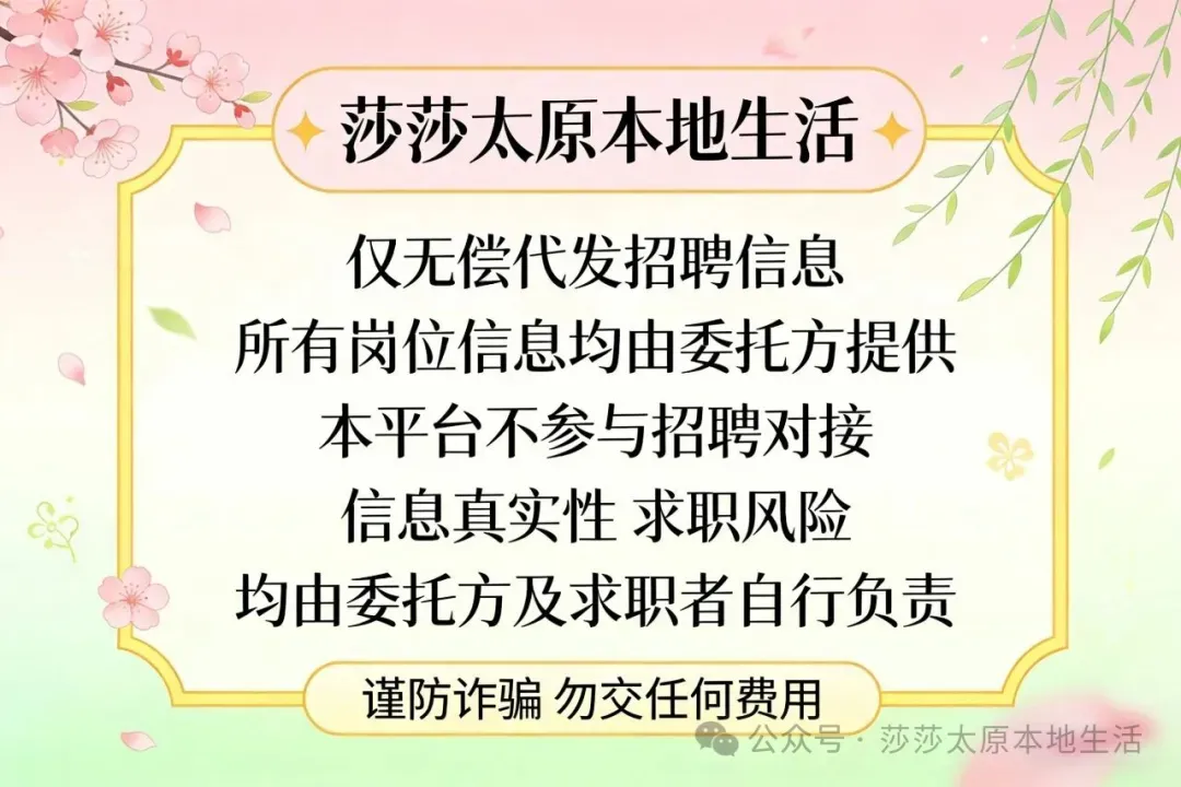 工作地点:太原市小店区指定工作区域(根据现场安排)