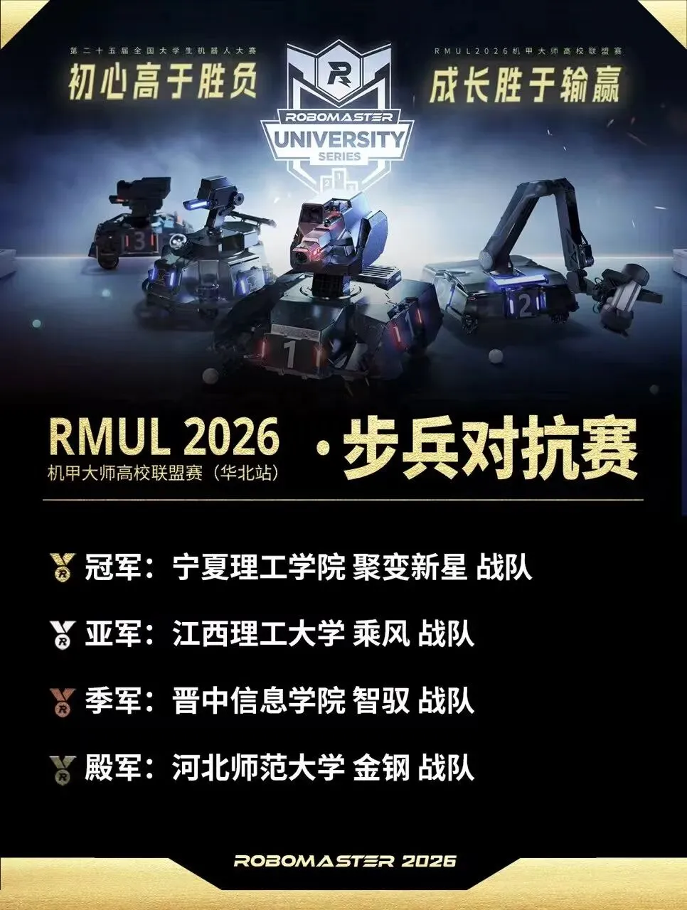 近日,第二十五届全国大学生机器人大赛RoboMaster2026机甲大师高校联盟赛(华北站)在内蒙古科技大学圆满落幕。