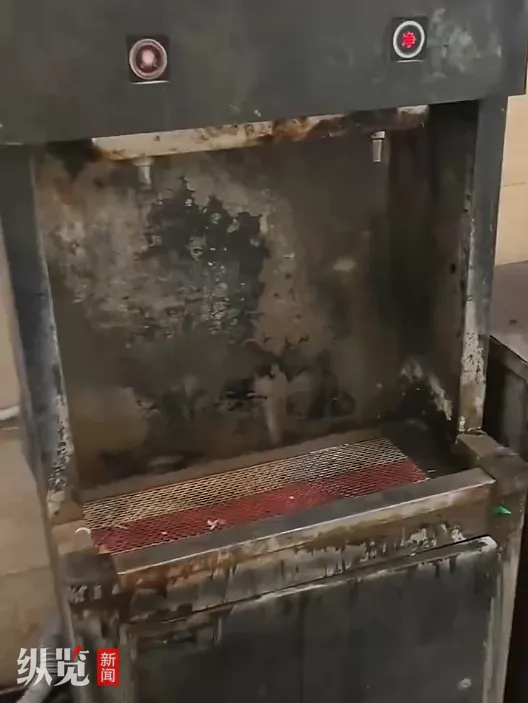 视频中一饮水机满是污垢。(来源/截图)