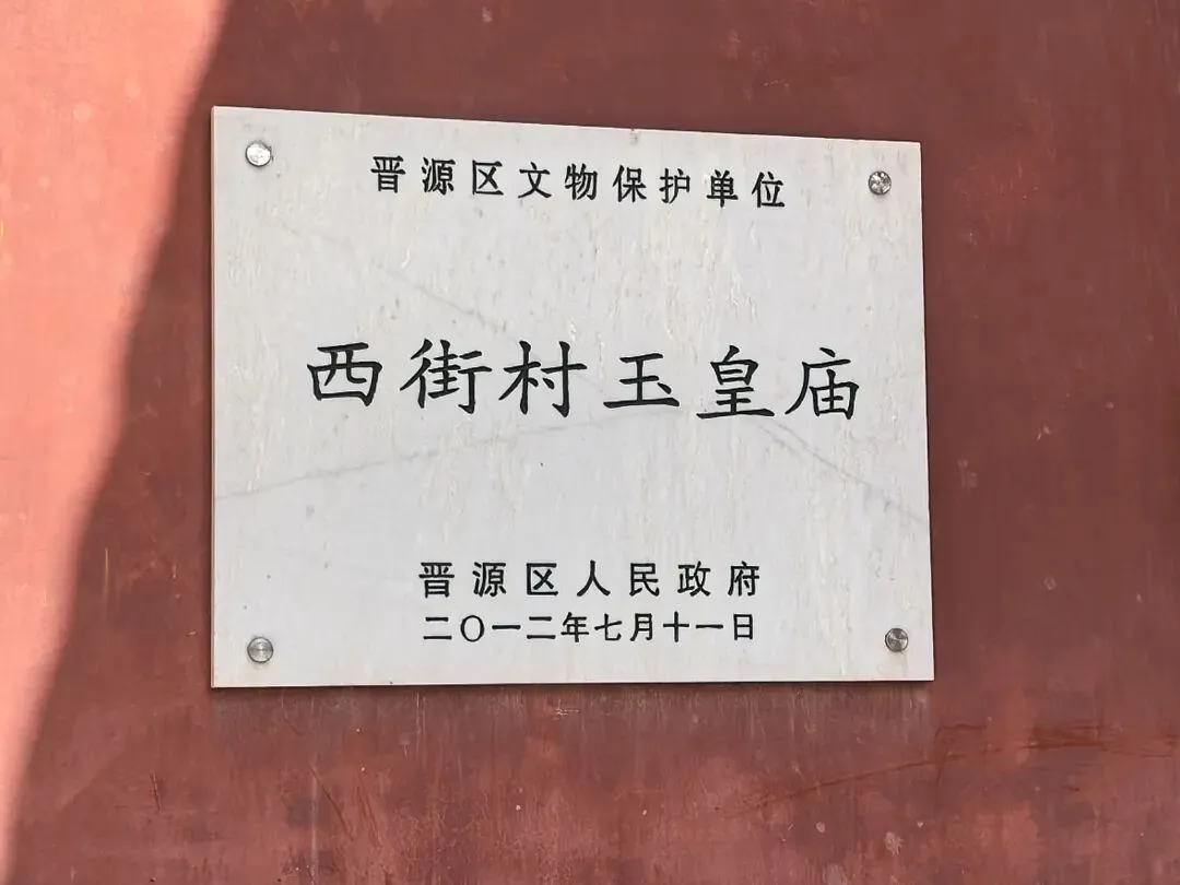 玉皇庙位于太原古县城西街,城门之北数十米处,坐北向南。它始建于明嘉靖至清道光年之间,是供奉玉皇大帝的庙宇,整体形制呈长方形,山门为二层建筑,下层为正门,上层为朝北的戏台。山门之西为厢房,厢房之北建有鼓楼,东面相对应处建有钟楼,再北有带前廊的东西厢房各3间。庙之北端为正殿,宽3间、深2间,内塑头戴珠冠冕旒、身着九章法服的玉皇大帝坐像,旁有二童侍立。正殿两侧各有偏殿一座,并形成小院落,东偏殿奉祀木泥匠祖师鲁班,并有