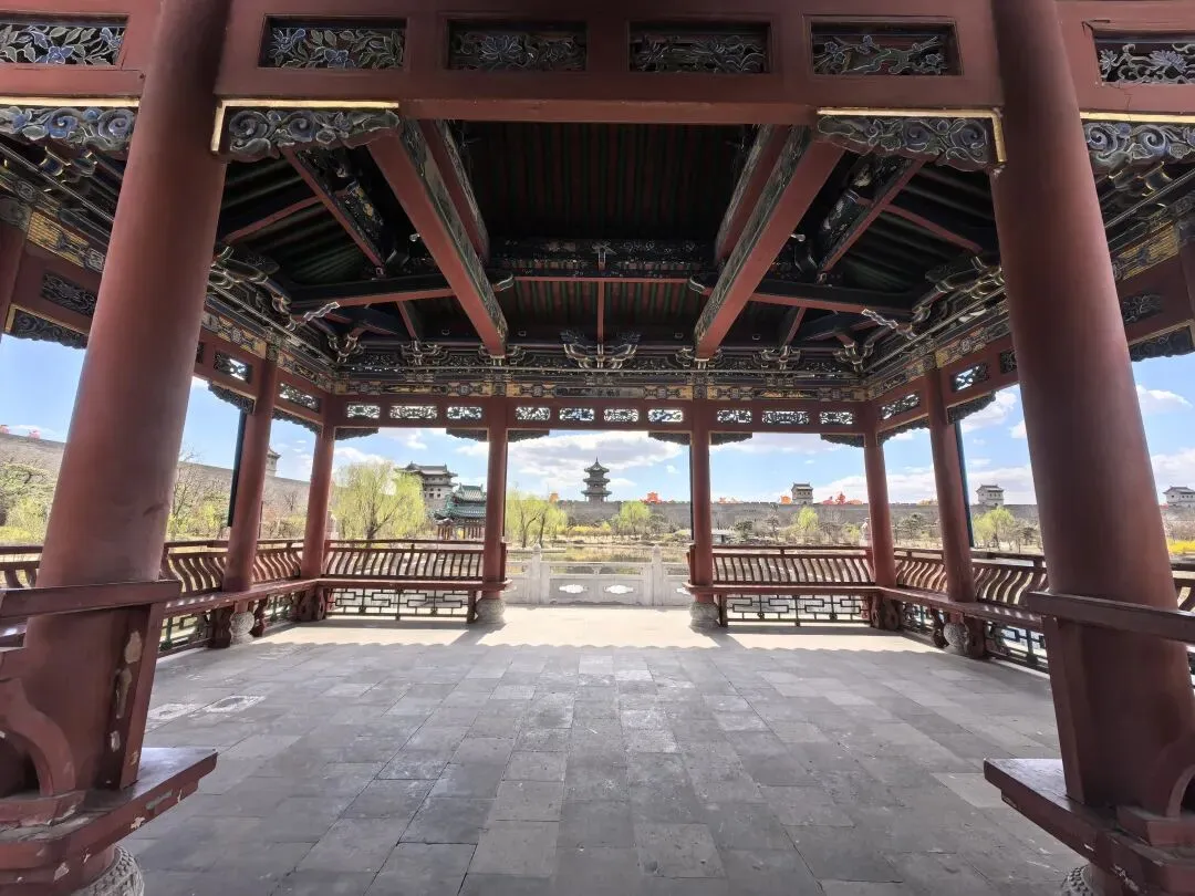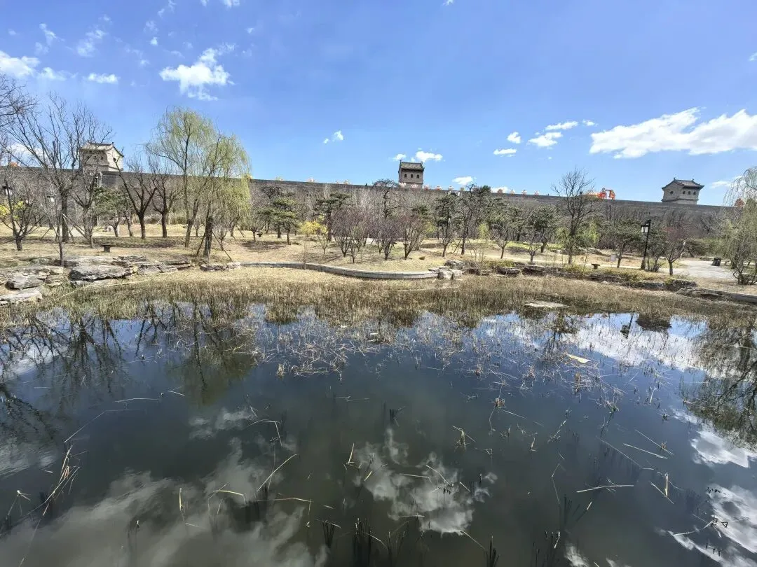 金牛泉区由金牛泉旧址与碑刻组成,并设立开放空间,供游客欣赏并形成小型集散场所供游人游玩。全园恢弘大气又不失精致典雅,古朴厚重又不失现代时尚,精致的园林小品与雄伟的县城相辅相成,有机统一;既是一个环境优美、具有生态功能的园林景观,更是镶嵌在明太原县城内一枚熠熠生辉的宝石。不过在水边坐着真是很舒服的。哪有游客?有人的话,就是打扫卫生的工作人员自己坐着歇息。要不怎么说,住别墅的主人都忙着去挣钱,是家里的保姆住着享受呢?这是路牌不停地指向的一个寺庙,好像叫保宁寺?但所有地图没有,该寺这个位置路也封住了。终于到了城隍庙。我算是明白了,为什么东门有牌子指引说进城先拜城隍爷之类的,原来如果从东门进来不直接往南走,而是往西走主路,就很难到达城隍庙了。因为我前面所说的原因,整个东南片区现在因施工等原因,道路就是封闭的,基本只能走环路。好了,城隍庙看完了,今天的太原古县城深度游也就基本结束了。我要从东门出去坐车啦。金牛湖公园西门。从早晨出来逛到现在已经一点半了,也算了了心愿。接下来去哪里?请看下回分解。