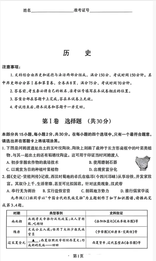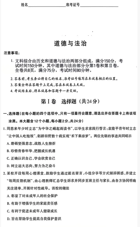 全科齐 | 太原模考一 B卷
