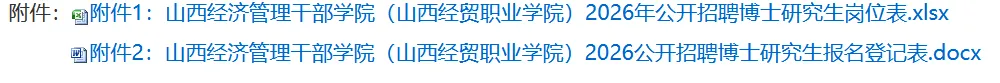 山西经济管理干部学院(山西经贸职业学院)2026年公开招聘博士研究生5名,均为专业技术岗位。招聘岗位所需的具体条件以《山西经济管理干部学院(山西经贸职业学院)2026年公开招聘博士研究生岗位表》(附件1)的要求为准。