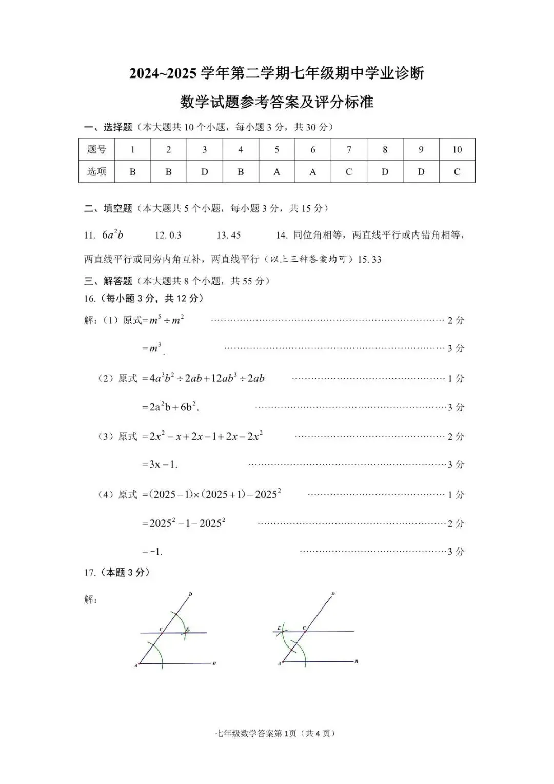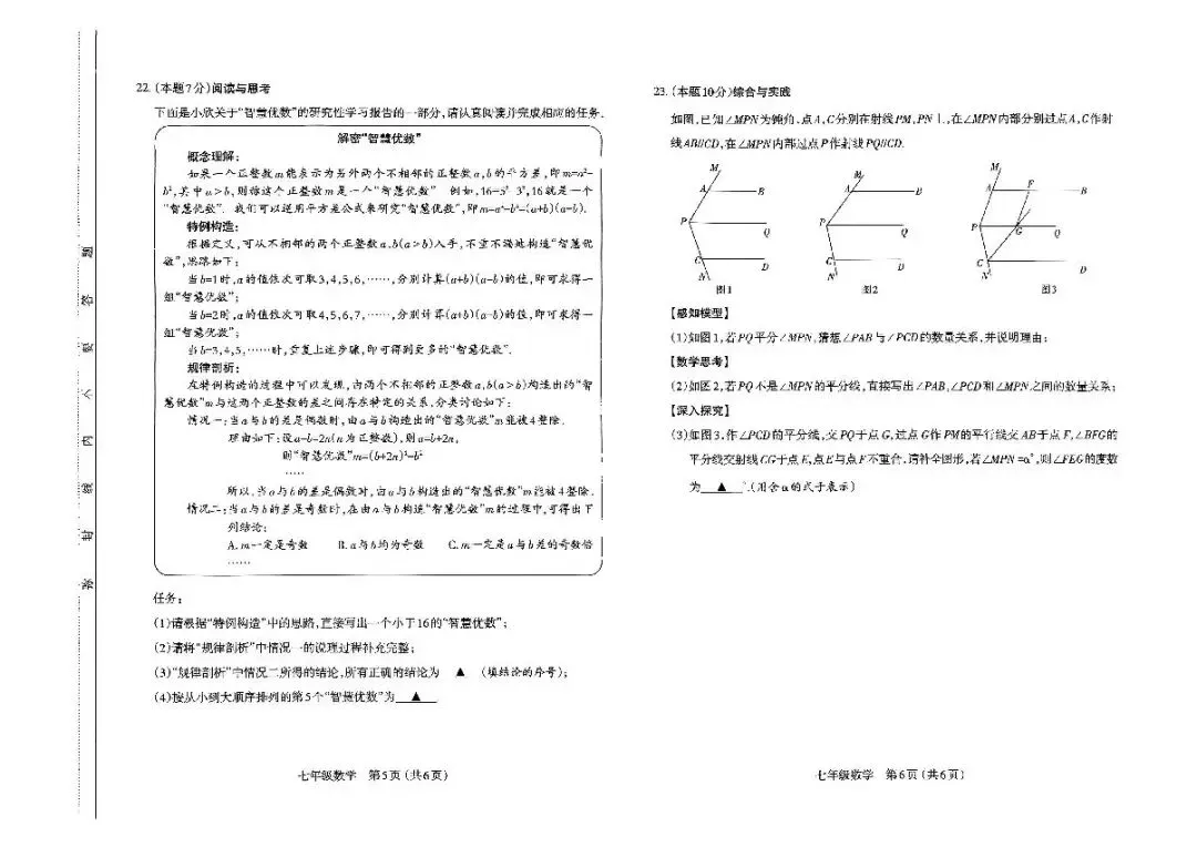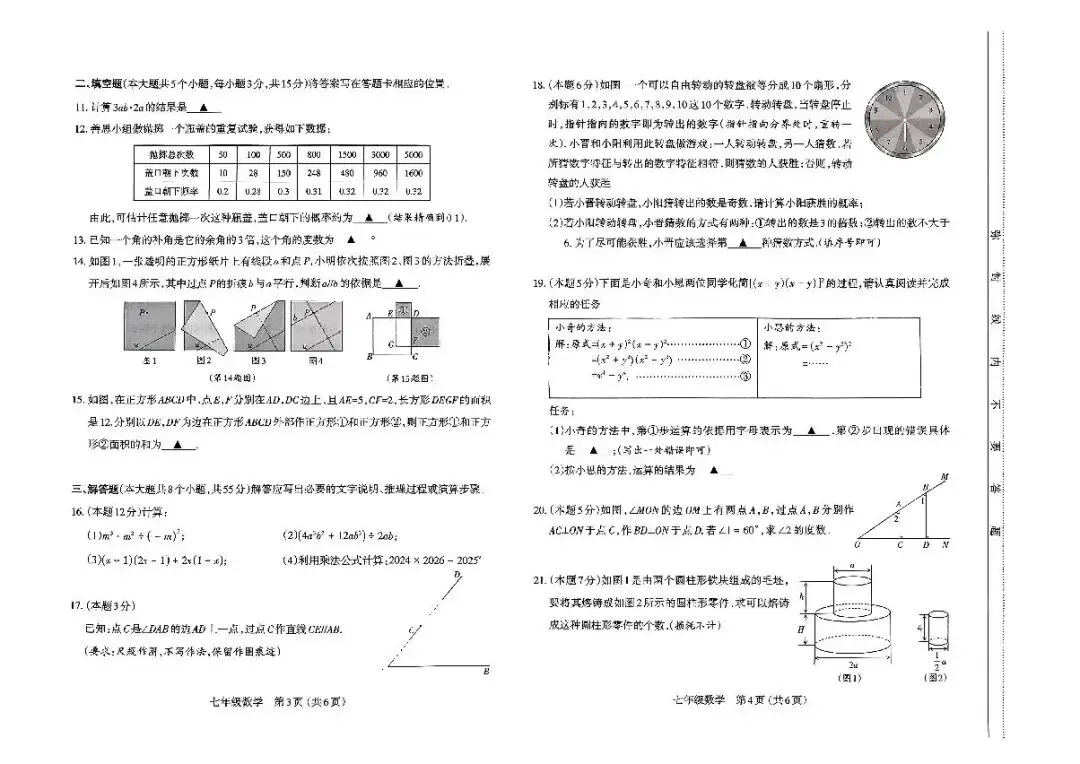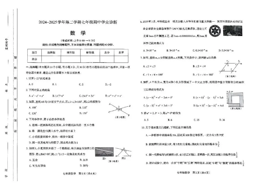>太原市2024-2025第二学期七年级期中测试题