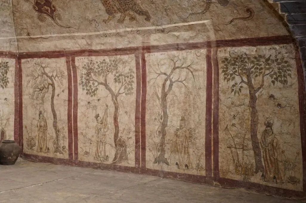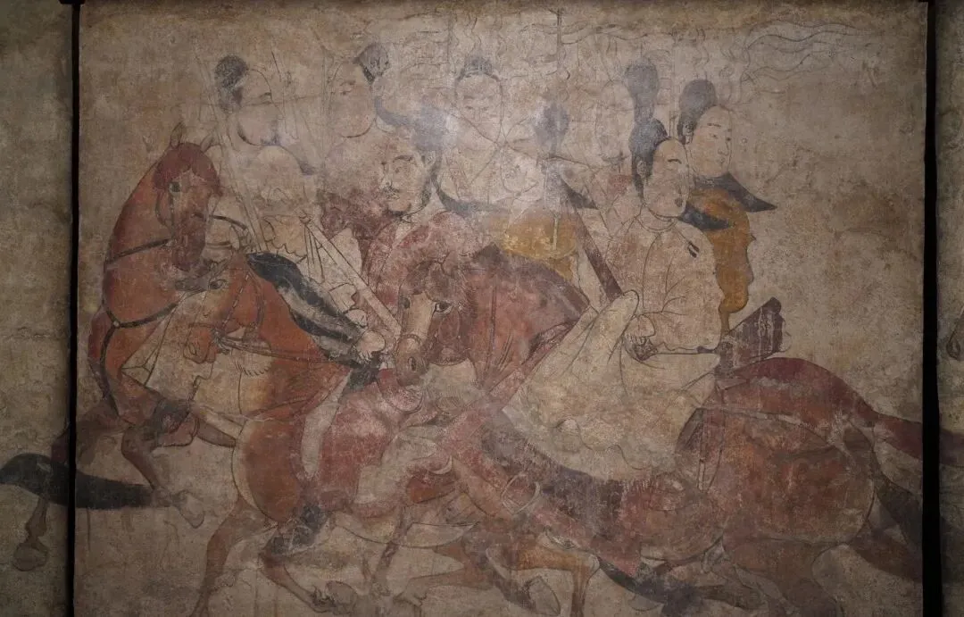 若想读懂北齐的风云,娄睿墓的文物便是不可错过的窗口。作为北齐外戚的长眠之地,这座古墓虽历经盗掘,仍出土了近千件文物,其中被誉为“改写中国美术史”的彩绘壁画尤为惊艳。200余平方米的壁画中,《鞍马游骑图》展现的卤簿仪仗,既有鲜卑民族的剽悍之风,又融入中原绘画的精妙技法,服饰、兵器等细节更成为研究当时社会风貌的活化石。