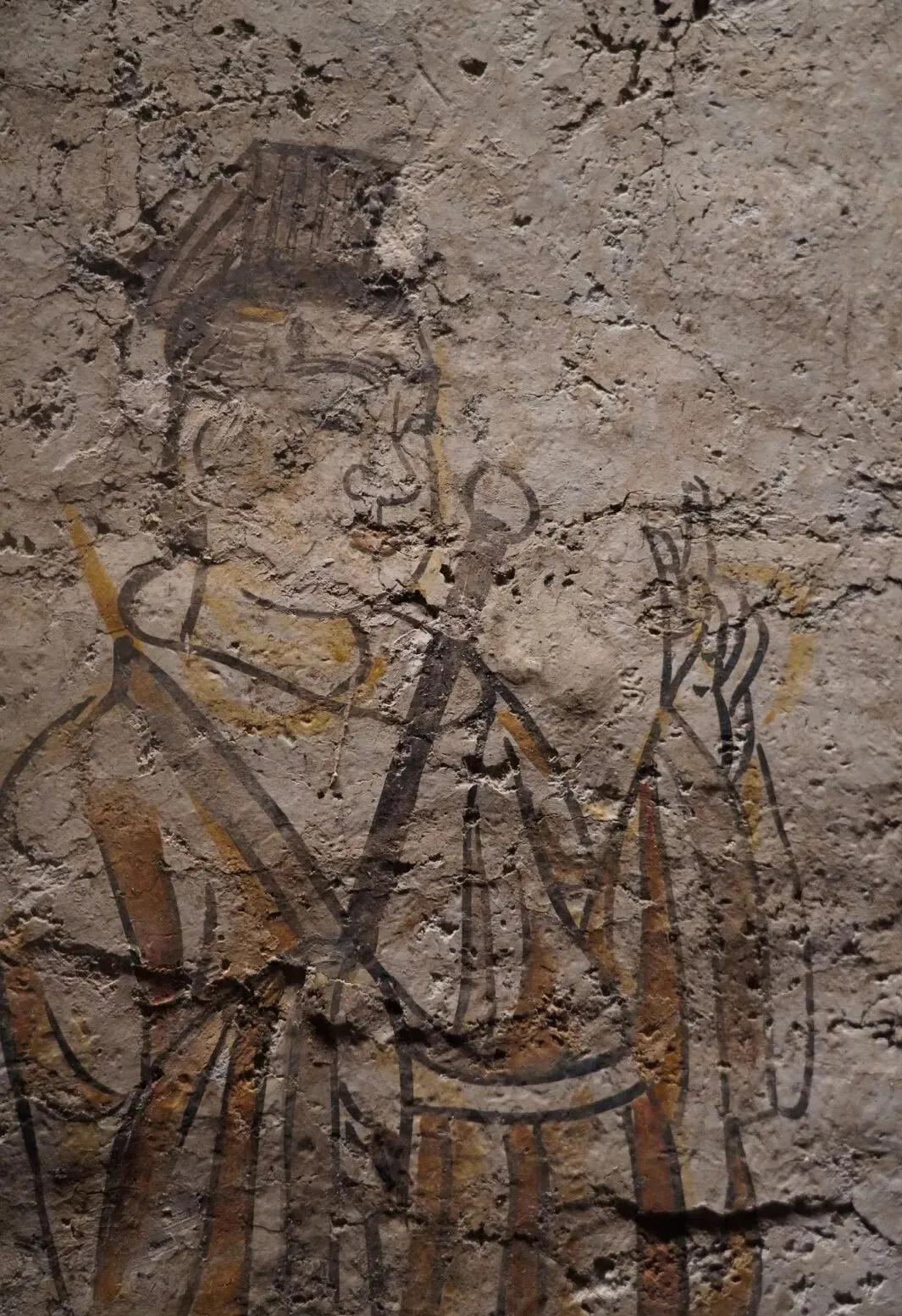 还有一座唐代墓葬被完整地搬了进来,这就是目前太原发现的规模最大的唐代壁画墓——郭行墓。壁画中多名人物食指和中指的手势,就像我们现在常说的“剪刀手”。