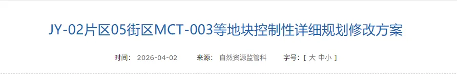 2026年4月2日,太原市行政审批服务管理局发布的JY-02片区05街区MCT-003等地块控制性详细规划修改方案的批后公示,标志着太原市城市更新进程中的又一实质性举措。