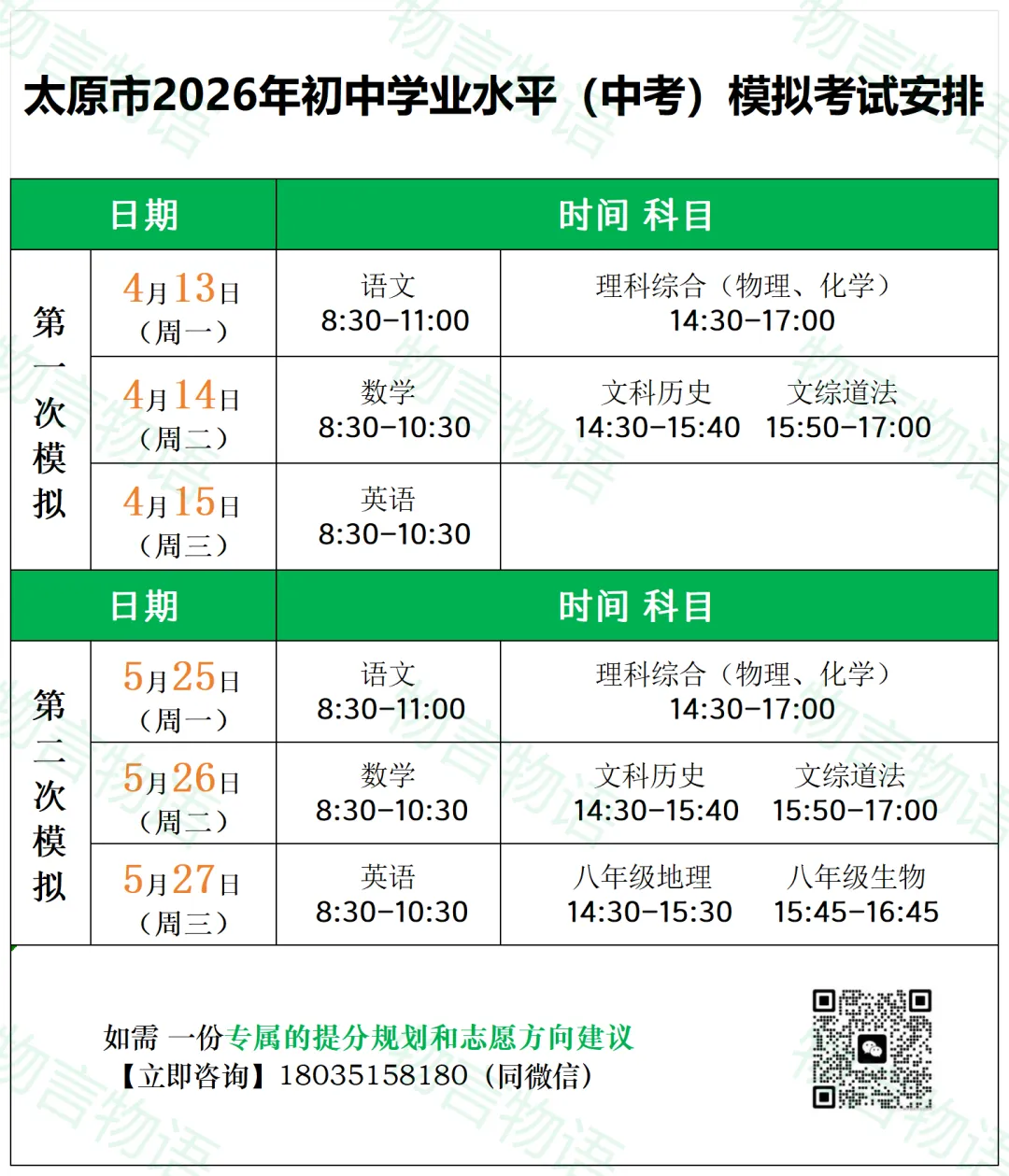 太原市2026年中考模拟考试安排